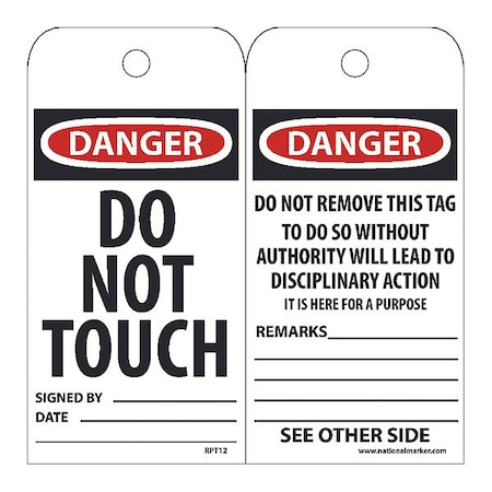 NMC RPT12, Tag"Danger Do Not Touch" (12 Packs of 25 pcs)