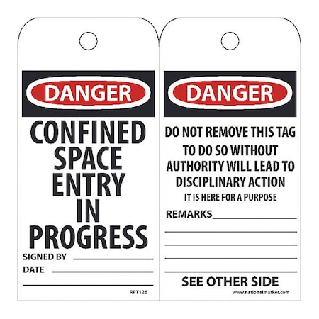 NMC RPT126, Tag "Confined Space Entry in Progress" (12 Packs of 25 pcs)