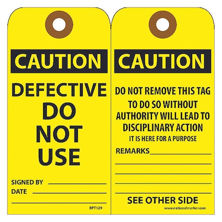 Caution Defective Do Not Use Tag,PK25, Package Quantity 25