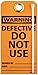 Warning Defective Do Not Use Tag, Pk25, Package Quantity 25