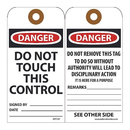 NMC RPT137G, Tag"Do Not Touch This Control" (10 Packs of 25 pcs)