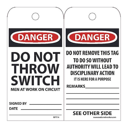 NMC RPT14, Tag"Danger Do Not Throw Switch Men." (12 Packs of 25 pcs)