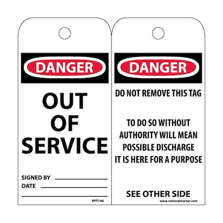 NMC National Marker Corp. RPT146ST Danger Out of Service Tag