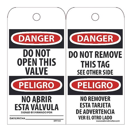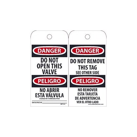 NMC RPT151, Tag"Do Not Open This Valve Bilingual" (12 Packs of 25 pcs)
