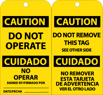 Do Not Operate Bilingual Tag,PK25, Package Quantity 25