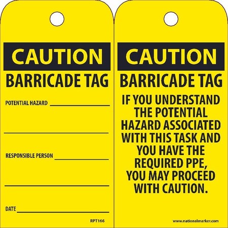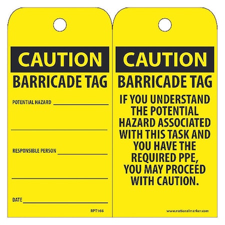 ACCUFORM NMC TAGS, CAUTION BARRICADE TAG, (RPT166)