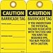 - Tag Legend: the front legend reads CAUTION - BARRICADE TAG. The back has the legend CAUTION - BARRICADE TAG - IF YOU UNDERSTAND THE POTENTIAL HAZARD ASSOCIATED WITH THIS TASK AND YOU HAVE THE REQUIRED PPE, YOU MAY PROCEED WITH CAUTION