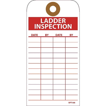 NMC Ladder Inspection Tag, Double-Sided, 25-Pack, 3" Width x 6" Height, Unrippable Vinyl, White/Red Text on Red/White Base, Made in The USA, RPT168G