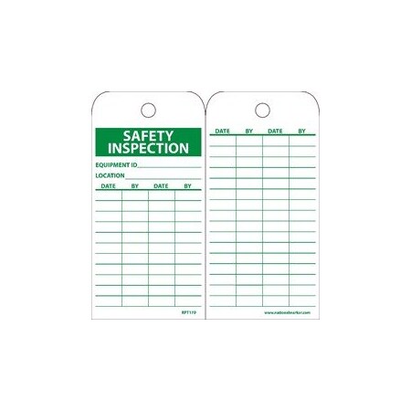 NMC Safety Inspection Tag with Grommets, Pack of 25, Double-Sided, 6" Height x 3" Width, Made in The USA, RPT170G