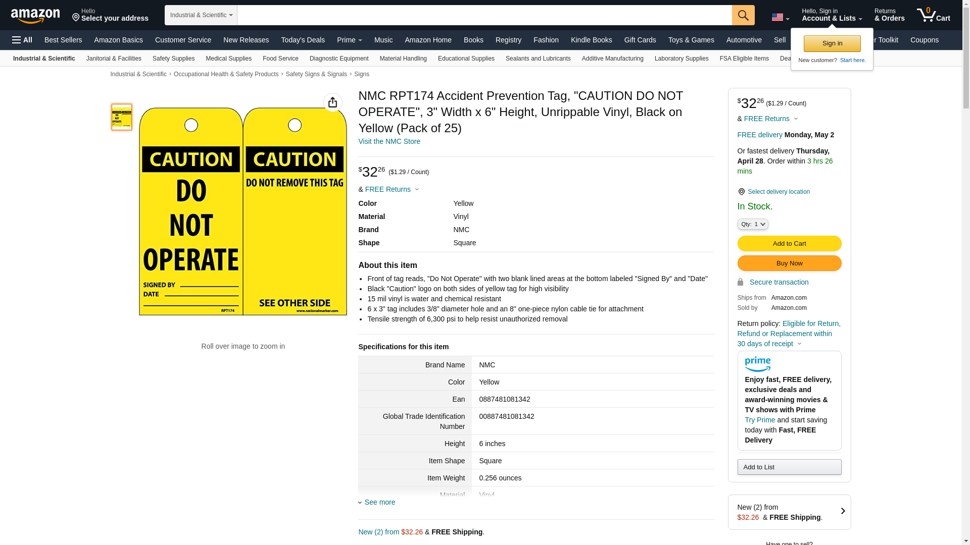 - Black "Caution" logo on both sides of yellow tag for high visibility