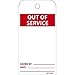 NMC RPT176ST Safety Sign Tags, Out of Service, 25Pk, 6X3.010 Synthetic Paper with 1 Top Center Hole, Zip Ties Included