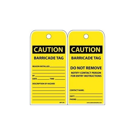 NMC RPT178ST250, Tag "Caution Barricade Tag ..." (4 Packs of 250 pcs)