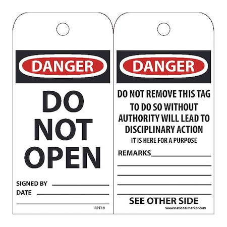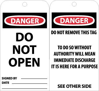 Danger Do Not Open Tag,PK25, Package Quantity 25