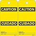RPT215, Caution Bilingual Tag Tags, Caution, Blank, Bilingual, 25pk, 6x3, .015 Unrippable Vinyl With 1 Top Center Hole, Zip Ties Included
