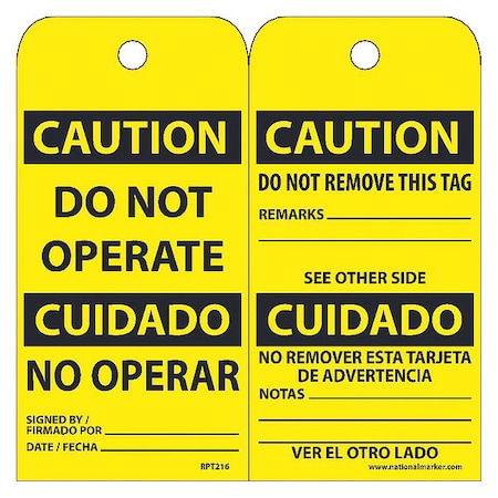 Cauton Do Not Operate Blngual Tag,PK25, Package Quantity 25