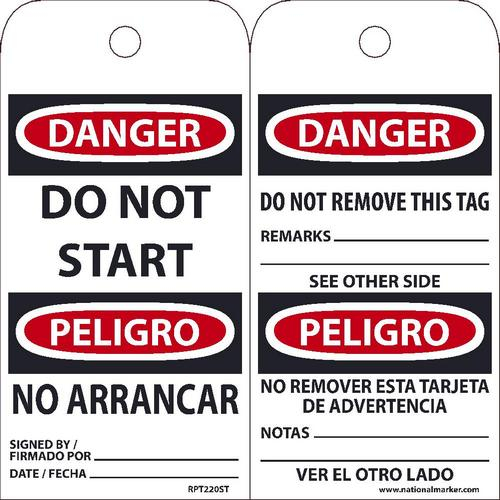 NMC RPT220ST, Danger Do Not Start" Bilingual Tag (20 Packs of 25 pcs)