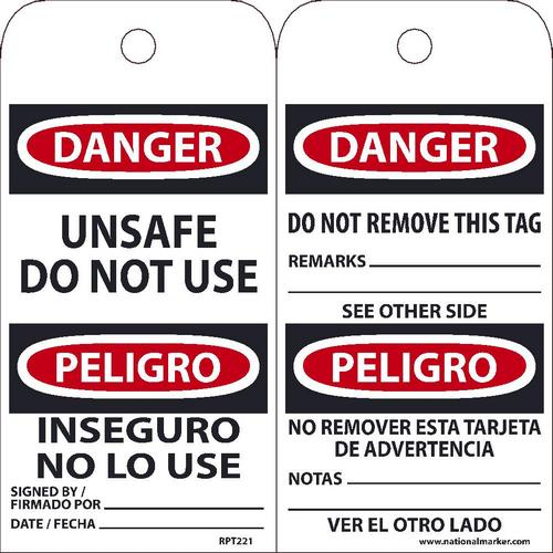 NMC RPT221 Danger Unsafe Do Not Use Bilingual Tag