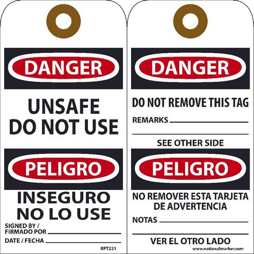 NMC RPT221G Danger Unsafe Do Not Use Bilingual Tag