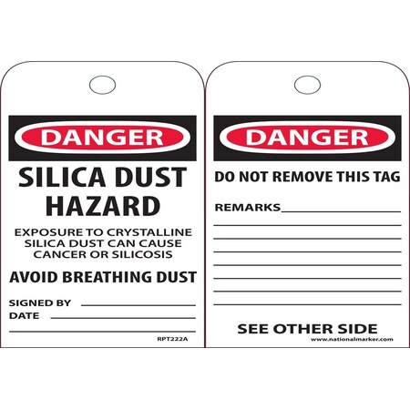 Silica Dust Hazard Tag, Pk25, Package Quantity 25