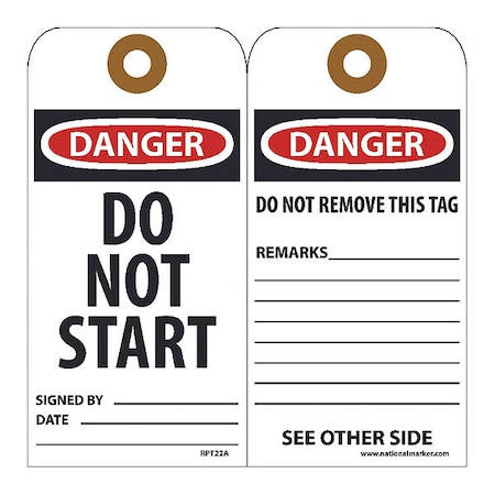 NMC RPT22AG, Danger Do Not Start Signed" Tag, Grommet (12 Packs of 25 pcs)