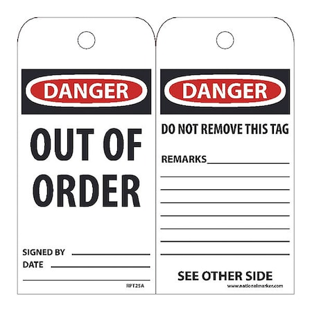 NMC RPT25A, Danger Out of Order" Tag (12 Packs of 25 pcs)