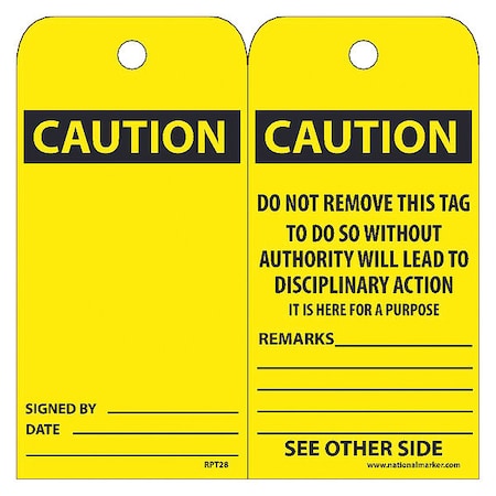 NMC RPT28, Accident Prevention Tag with Legend:"Caution" (12 Packs of 25 pcs)