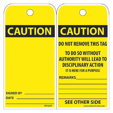 NMC RPT28ST Safety Sign Tags, Caution, Do Not Remove, 25Pk, 6X3.010 Synthetic Paper with 1 Top Center Hole, Zip Ties Included