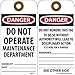 Danger Do Not Operate Maintenance Department Tag_, Pk25