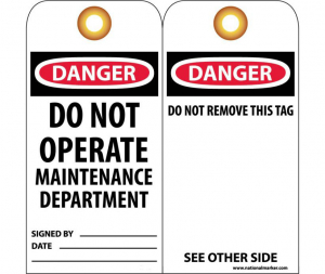 Accident Prevention Tag RPT2, Legend: Danger, Do Not Operate Maintenance Department