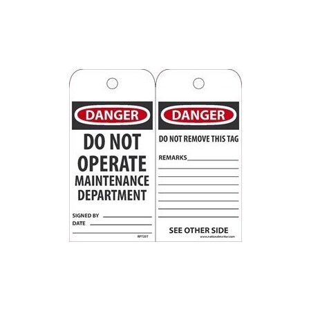 NMC National Marker Corp. RPT2ST Danger Do Not Operate Maintenance Department Tag
