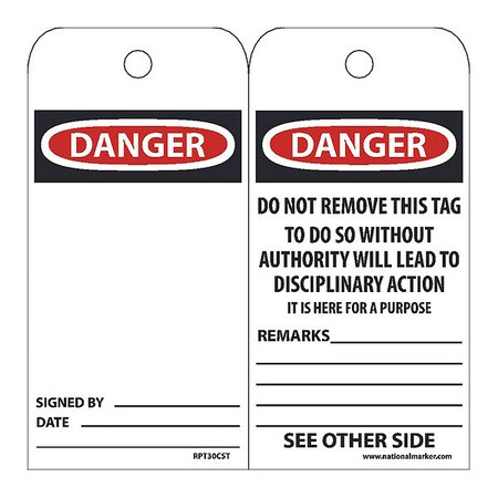 NMC RPT30CST, Danger Signed" Tag (20 Packs of 25 pcs)