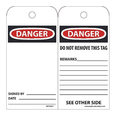 NMC RPT30ST, Danger Signed" Tag, Synthetic Paper (20 Packs of 25 pcs)