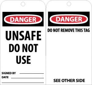 Nmc Tags - Danger - Unsafe Do Not Use Signed By___ Date___ Do Not Remove This Tag See Other Side - White