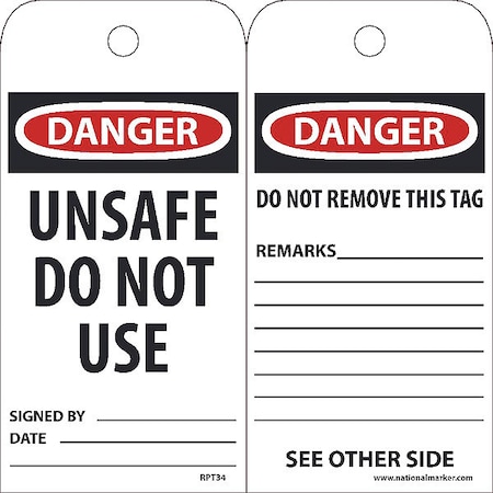 NMC RPT34, Tag "Danger Unsafe Do Not Use" (12 Packs of 25 pcs)