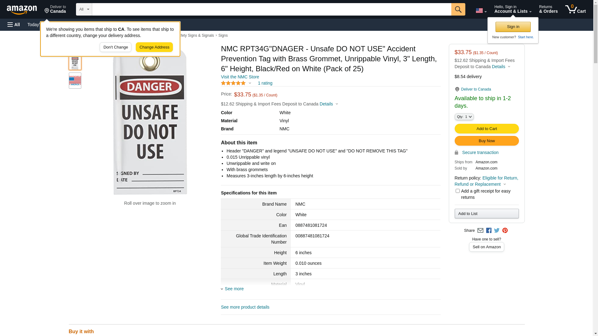 NMC RPT34G, Tag "Dnager Unsafe Do Not Use" (10 Packs of 25 pcs)