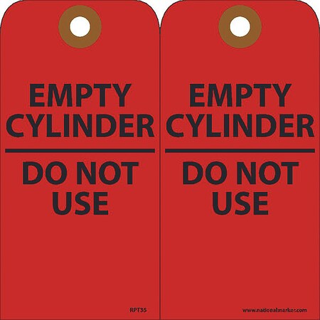 NMC Empty Cylinder Do Not Use Tag, 25-Pack, Double-Sided, 3" Width x 6" Height, Inspection Tag with Black Text on Red Base, Made in The USA, RPT35G