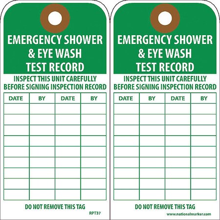 Tag,Emerg Shower/Eye Wash Test Rcrd,PK25, Package Quantity 25