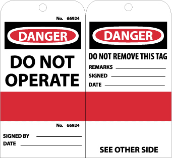 Nmc Tags - Danger - Do Not Operate No. 66924 Signed By___ Date___ Do Not Remove This Tag Remarks___ Signed___ Date___ See Other Side - White