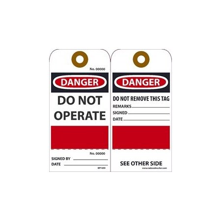 NMC RPT499, Tag "Danger Do Not Operate" (10 Packs of 25 pcs)