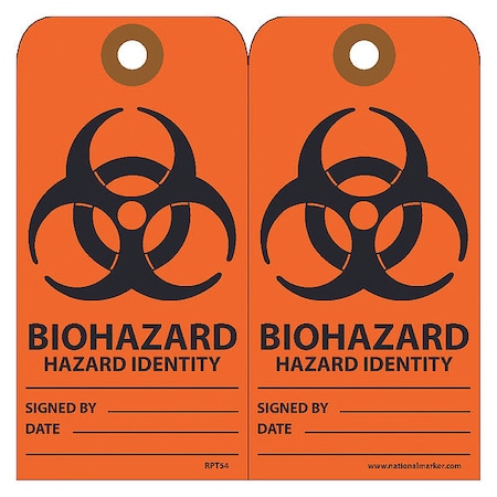 NMC RPT54G, Tag"Biohazard Hazard Identity" (10 Packs of 25 pcs)
