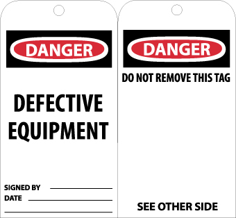 Tags, Danger Defective Equipment, 6X3, Unrip Vinyl W/ Grommet Accident Prevention Tags Warn off potential hazards and provide information on the job site.