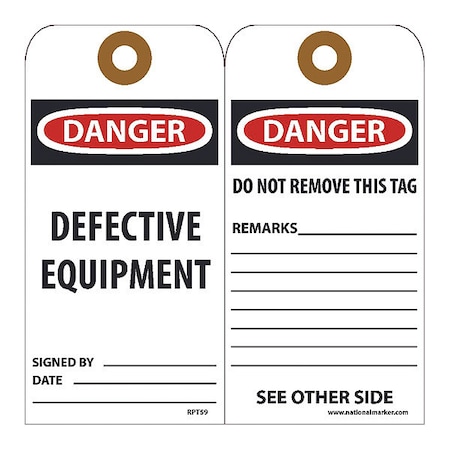 NMC RPT59G, Tag "Danger Defective Equipment" (10 Packs of 25 pcs)