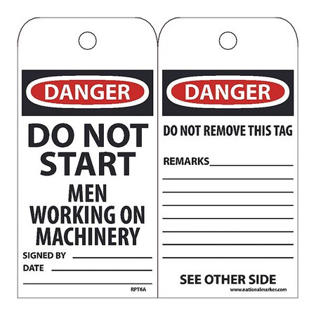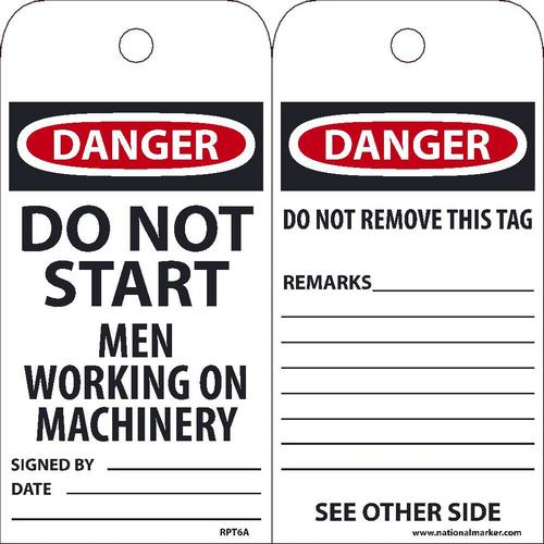 NMC RPT6A Danger Do Not Start Men Working On Machinery Tag