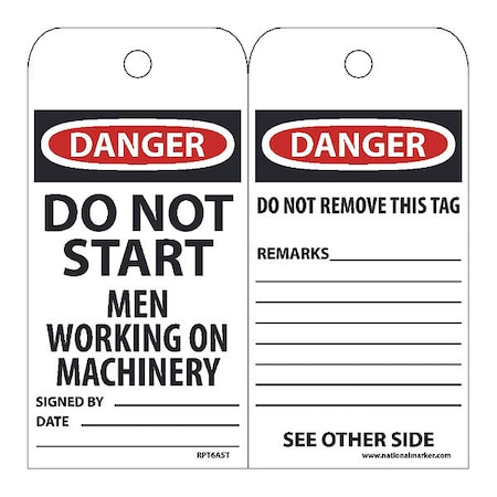 NMC RPT6AST Danger Do Not Start Men Working On Machinery Tag
