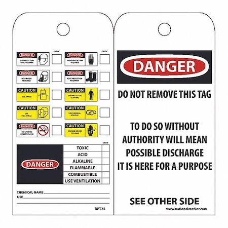 Tags, Chemical Id, 6X3, Unrip Vinyl Accident Prevention Tags Warn off potential hazards and provide information on the job site.