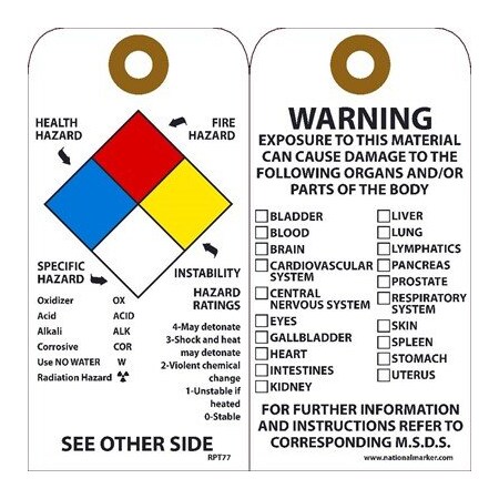 NMC RPT77G, Tag "Hazardous Materials NFPA" (10 Packs of 25 pcs)