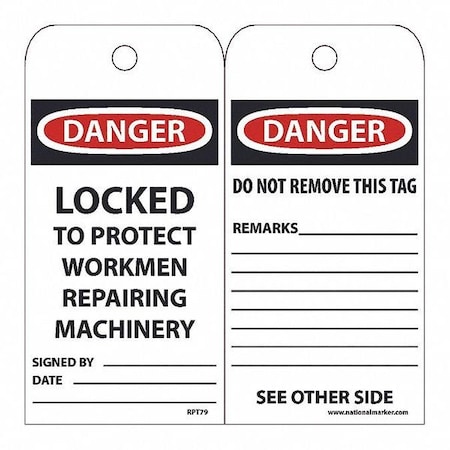 Nmc Tags - Danger - Locked To Protect Workmen Repairing Machinery Signed By___ Date___ Do Not Remove This Tag See Other Side - White