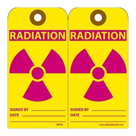 NMC RPT85G, Accident Prevention Tag with Legend:"Radiation" (10 Packs of 25 pcs)
