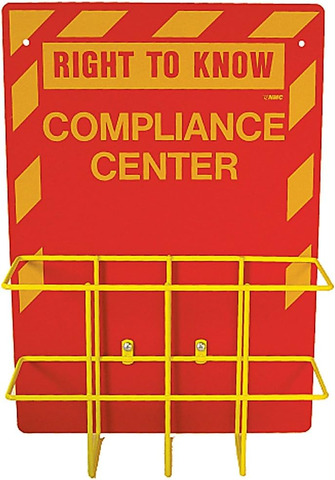 NMC RTK3 2 Piece Right To Know Center Kit with Backboard and Rack, "RIGHT TO KNOW COMPLIANCE CENTER", Red on Yellow