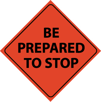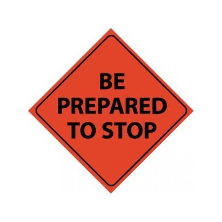NMC RUR1 BE Prepared to Stop Sign - 48 in. Diamond Nylon Roll-Up Traffic Sign with Black Text on Orange Base